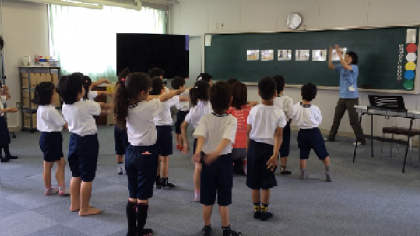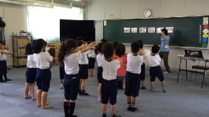 「さあー、やってみよう!」英語であいさつ!もちろんジェスチャーもつけて!!