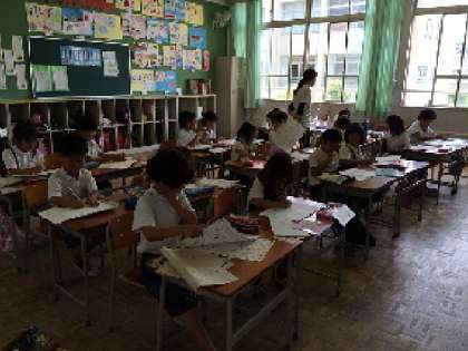 1年生算数の授業の様子です。答え合わせをしていました。○がいっぱいついたでしょうか!