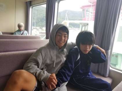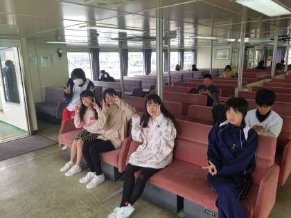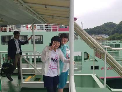 予定通り、フェリーで大崎上島へと向かいます。到着後は、大串海水浴場でシーカヤック体験です!