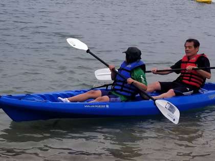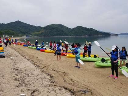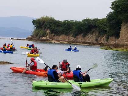 インストラクターさんの説明をしっかりと聞き、シーカヤック体験が始まりました。最初はおっかなびっくりの生徒もいましたが、みんなで楽しく活動することができました。