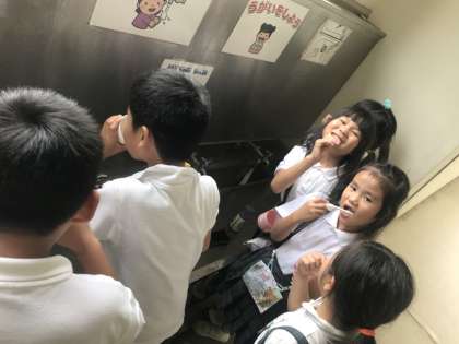 今週は、歯と口の健康週間です。保健給食委員会の児童が、毎日給食の放送で、歯に関するクイズを出題してくれています。給食後には、音楽に合わせて歯みがきをする姿がたくさん見られます。自分の歯を大切にする意識を、ずっと持ち続けたいですね。