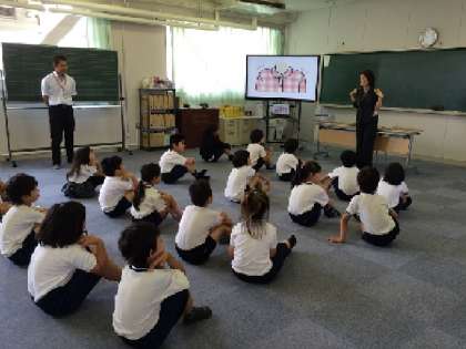 そして、歌に合わせて、体を動かして・・・。楽しい外国語活動の様子を、保護者の皆様に見てもらいました。