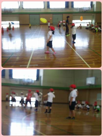 1・2年生は遠足が中止になったかわりに、室内オリンピックを開催しました。風船リレー、紙飛行機とばし、コーンボーリングなど、合同チームで協力してのぞみました。みんなで弁当を食べた後は、表彰式もありました。どのチームも、最後まであきらめずにがんばりました。