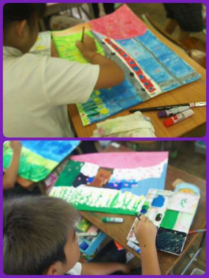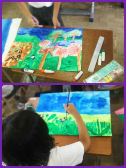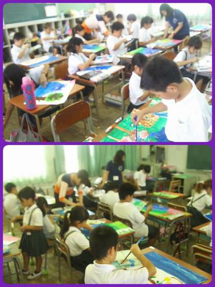 3年生は図工で、大和川沿いに咲く植物を調べて絵の具で描いています。一つ一つの植物を、川の流れる様子とともに丁寧に彩色しています。今年もコンクールに応募します。完成が楽しみです。