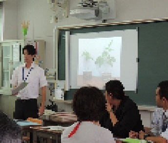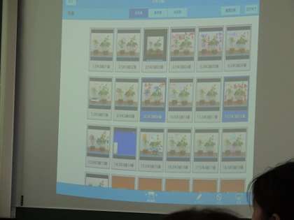 討議会に続いて、ICT操作体験も実施しました。電子黒板に投影したものをそれぞれのタブレットに配布できます。マーキング機能を使って、そこに書き込みをすることができます。さらに、書き込んだものを、前の電子黒板に映し出して、共有することができます。全員の物を映し出すことはもとより、比較したい物をいくつかピックアップして映し出すことができます。その他、本校で活用した様々な機能も時間が許す限り体験していただきました。参加していただいた先生方は、自校での活用について考えながら体験されているのが感じられました。