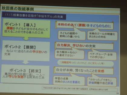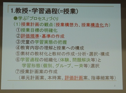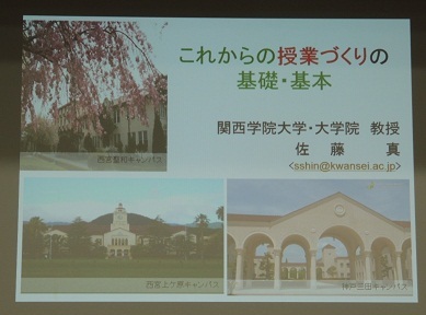 研究発表・公開授業・討議会・ICT操作体験に続いて、全体会を講堂で行いました。全体会では、まず、関西学院大学 教授 佐藤 真 様よりご講演をいただきました。演題は、「これからの授業づくりの基礎・基本」です。ご講演の中で、本日の2つの公開授業について、「『めあて』をしっかり決めて行っている」こと、指導案の中の評価の部分でA基準・B基準だけでなく、『B基準に達していない生徒への手立て』を示していることを評価していただきました。ありがとうございました。