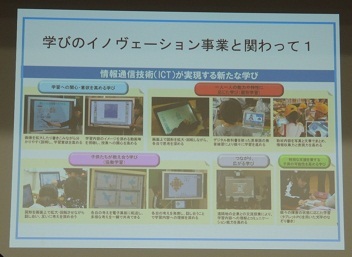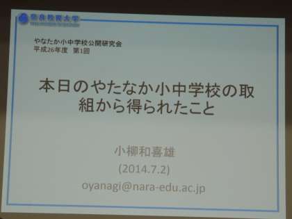 続いて、奈良教育大学 教授 小柳 和喜雄 様に、ご講演と本日の授業の講評をいただきました。ご講演の中で、文部科学省が進めている「学びのイノベーション事業」の実証研究からの情報にも触れていただきました。そして、参加されているモデル校以外の先生へ、ICTの活用については、「できるところから」「ICTがあったらいいな」と感じる場面から使っていくとよいというアドバイスもいただきました。ありがとうございました。