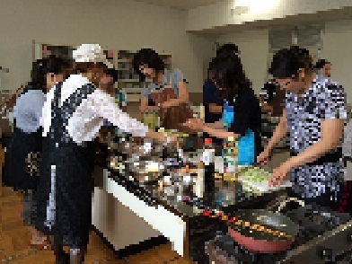 子どもたちが楽しい時間を過ごしている時間、大人たちも、また、楽しい時間を過ごしました。今日は、3つの国の料理を一緒に作りました。互いに料理の作り方を交流しながら、話を楽しみながら。配膳は子どもたちも手伝って、最後はみんなそろって、おいしくいただきました。次回も楽しみです。