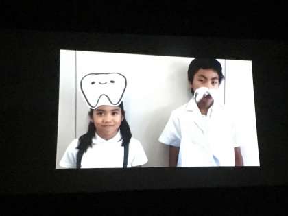 保健給食委員会は、自分たちが登場人物に扮した保健啓発動画を撮影しました。全校児童に上映して、昔の人の歯の秘密から、かむことの大切さ、歯みがきの大切さを伝えてくれました。