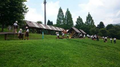 5年生は、予定通りの時刻に神鍋高原をめざし出発しました。バスの中では、バスレクを楽しみました。元気すぎるくらいの様子で、楽しそうに過ごしています。神鍋には、予定より少し早い時間に到着しました。みんなで昼食を食べ、アスレチックで遊んでいます。