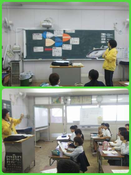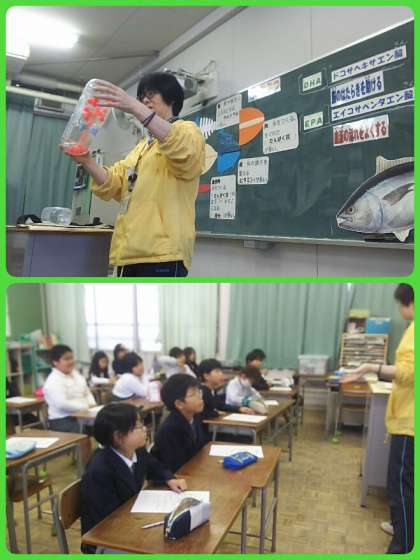 4年生は、食育で魚について学びました。それぞれの部位の栄養分を、興味深く聞いていました。脳のはたらきを助けるドコサヘキサエン酸と、血液の流れをよくするエイコサペンタエン酸もしっかりと覚えました。