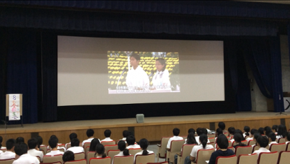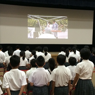 8月6日(水)は、やたなか小中一貫校の『平和登校日』です。1年生から9年生までが講堂に集まって、一緒に学習しました。