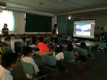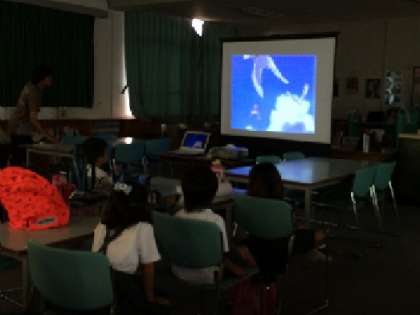 第2部では、1年生から4年生は図書室へ移動しました。最初に、8月6日のこと、みんなに知ってほしいことなどを先生から話をしてもらいました。そして、ビデオ「はとよ・ひろしまの空を」を見ました。みんな真剣に見ていました。