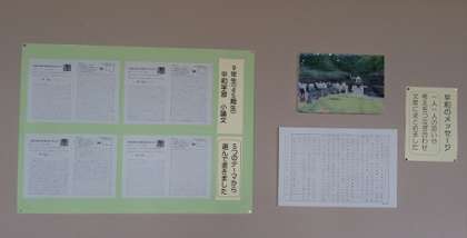 9年生は、長崎修学旅行での平和のセレモニーの様子や自分たちが作った「平和のメッセージ」を展示しました。