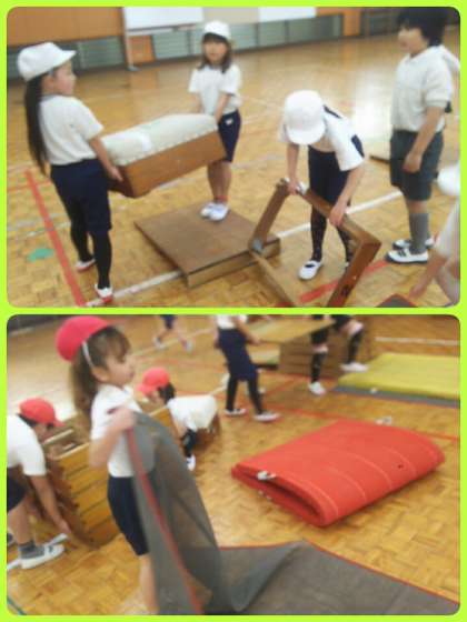 2年生は、体育でとび箱運動をしています。手をつく位置を意識しながら、だいぶ上達してきました。準備や片付けも、協力しながらできています。