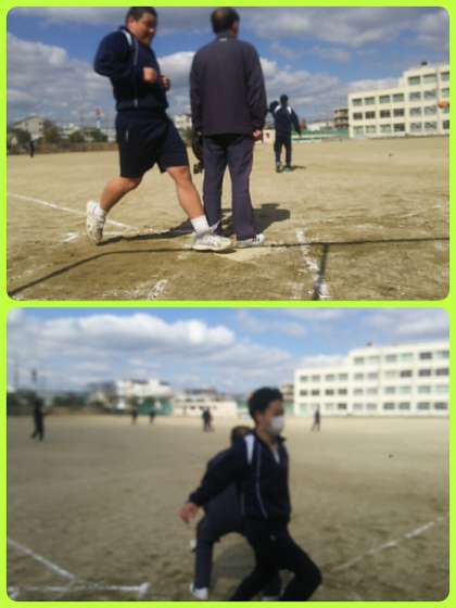 9年生男子は、体育でソフトボールをしました。狙いを定めて、フルスイングで反応しました。チャンスでヒットを打った友達を、大歓声で迎え入れていました。見応えのある試合ができました。