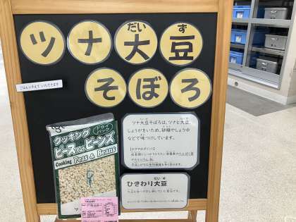 今日の献立は「鶏肉のゆず塩焼き、ソーキ汁、ツナ大豆そぼろ、ごはん、牛乳」でした。ツナ大豆そぼろは、ツナと大豆、しょうがをいため、砂糖やしょうゆなどで味つけしています。