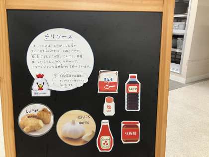 給食では、しょうが汁、にんにく、砂糖、塩、こいくちしょうゆ、ケチャップ、トウバンジャンを混ぜ合わせて作っています。中学校は、中学生の嗜好に合わせてトウバンジャンを増量しています。ごはんのすすむおかずで人気がありました。