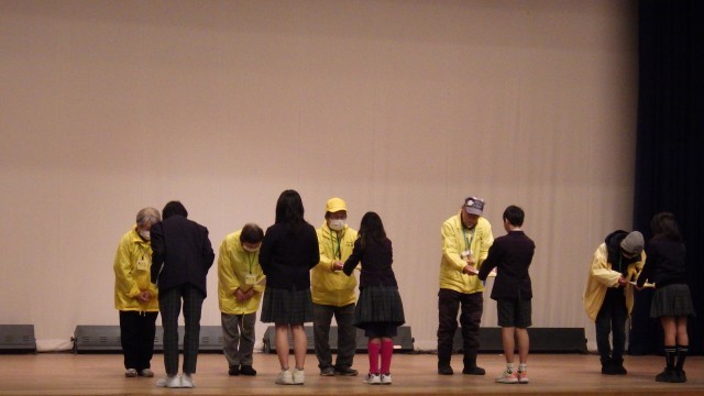 生徒会代表からの感謝の言葉と、手紙を贈呈しました。また、見守り隊の皆さんから、お一人ずつ児童生徒に向けてお言葉もいただきました。