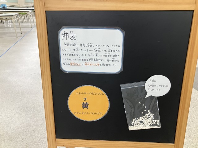 今日は押麦のグラタンにしていただきました。外はカリカリ、中はもちもちで児童生徒に好評でした。
