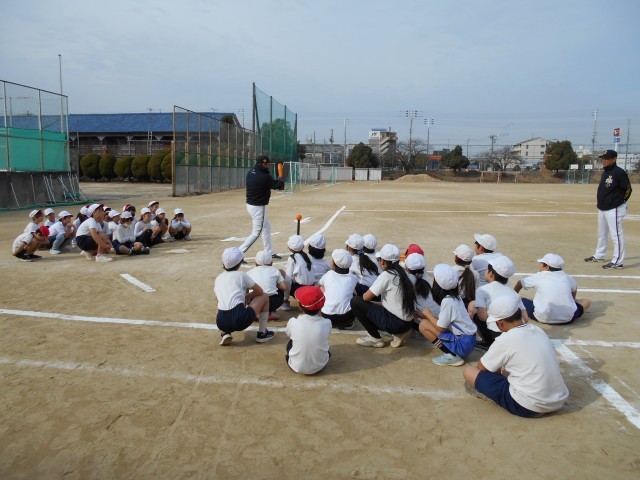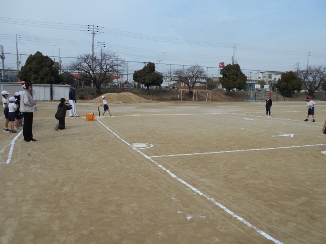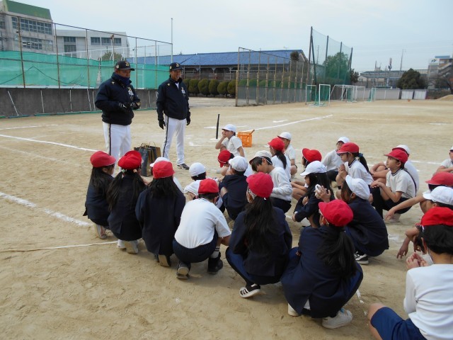オリックスバッファローズの方々を招いて、ティーボールを、3・4年生が教えていただきました。始めにルールや打ち方を教えてもらい、その後各学年2チームに分かれて試合をしました。とても分かりやすいルールで、子どもたちはとても楽しそうに活動していました。