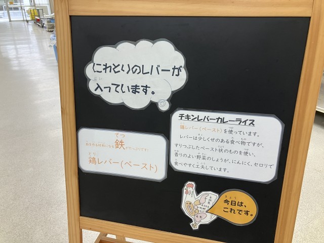 鶏レバーに多く含まれる鉄は、血液中の赤血球(ヘモグロビン)の材料となります。赤血球は、全身に酸素を運ぶ働きがあり、貧血を予防します。鶏レバーが入ることで、鉄だけでなくビタミンAもたくさんとれる献立でした。