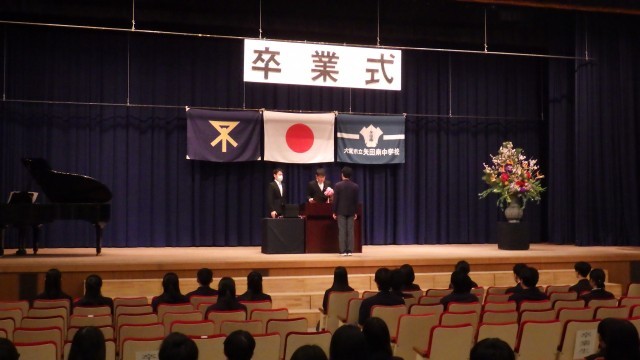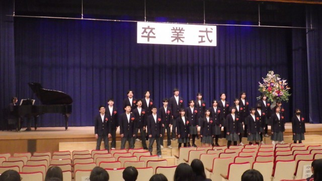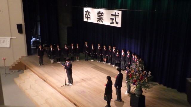 卒業式が行われました。28名の9年生が卒業証書をしっかりと手にし、巣立っていきました。3年間の中学校生活で学び、経験したことはこれからの人生の力になってくれるはずです。応援しています。