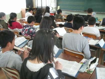 寒いな〜と思いながら6年生の音楽の学習を覗いてみると、『春よ、来い』の曲を笛で演奏していました。澄んだ音色の中に、曲名から連想させる思いとよく似た思い、「春の暖かさが戻ってきて!」という思いが強く伝わってくる美しい二部合奏でした。