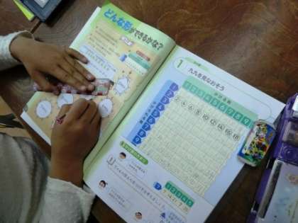 子どもたちは、次の段ではどんな模様ができるのかなと、