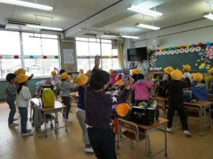 帰る前に楽しい取り組みを行っています。