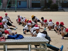 2年生は運動場で元気よく体育(↑)