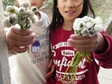 たくさんのシロツメクサを束ねて、花束にして見せてくれました。(↓)