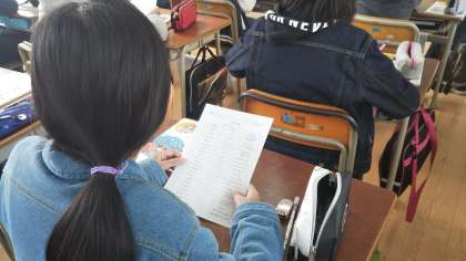 今日、早速5年生と6年生の外国語活動の学習がありました。