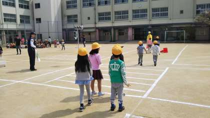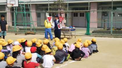 2時間目に1年生と一緒に「交通安全指導」を行いました。