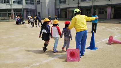 信号機の色の意味を確認したり、横断歩道では止まって右・左・右を確認して進んだりすることを学びました。
