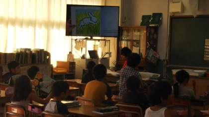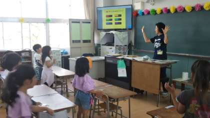 今日は英語で、チャンツをしたり絵本の読み聞かせをしたりしていました。
