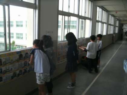 5年生になって、新たに家庭科の学習が始まりました。家庭科では、よりよい生活を営むために必要な知識や技能を身に付ける学習をします。例えば、『裁縫』です。その学習では、ナップザックや小物入れを作ります。その際に使う教材を、今廊下に貼り出しています。子ども達は休み時間になると、どの裁縫セットを使って作ろうかと友達と楽しそうに相談しながら選んでいました。