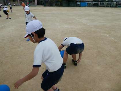 頭の回りを1周、腰の回りを1周、足の回りを1周回す練習、