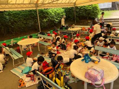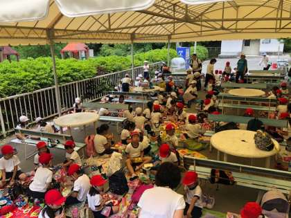 みんなで楽しくお弁当を食べています。