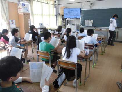 本論には、序論の問いかけの答えが書かれているので、今日はそれを読み取っていきました。友達が本文を読んでいる間、聞いている人は、大切だと思うところに線を引きました。その後、互いに考えたことを交流し合って、学習のねらいに迫っていきました。
