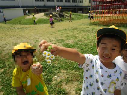 シロツメクサ、オオイヌノフグリ、だんごむし、