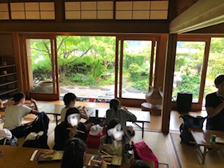 陶芸体験を終え、素敵な庭を見ながらの昼食です。