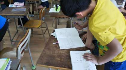 80×2.3の計算のしかたを自分で考え、ノートに書き、友だちに伝えました。