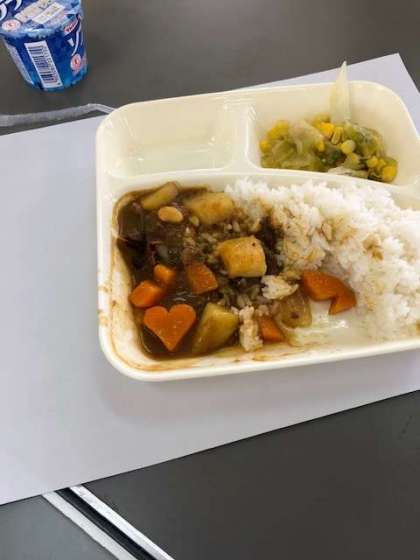 今日の給食「牛肉と大豆のカレーライス」の中に、