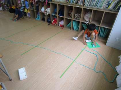 机から床一面に広がり、なんとも壮大な作品になりました。
