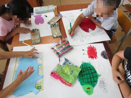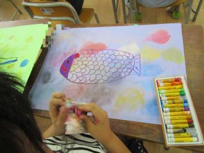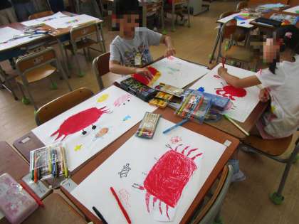 1年生は今週の図工科で、大和川の絵を描きました。