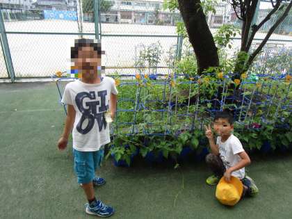 きれいなお花と一緒に記念撮影をしました。