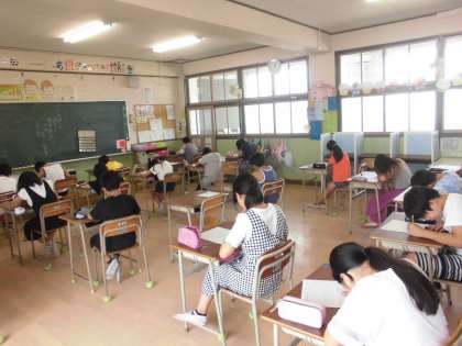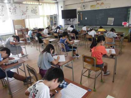 検定中に教室に入ると、「コンコンコンコン・・・・」と、プリントに書き込む鉛筆の音しか聞こえません。子ども達は、黙々と検定に取り組んでいました。