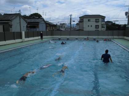 水慣れの後、泳力ごとに分かれたグループで、それぞれの学習の目当てに沿って、練習をしました。