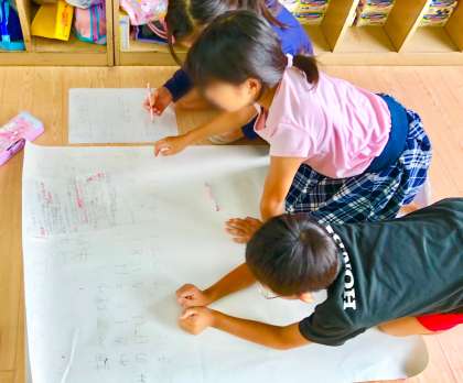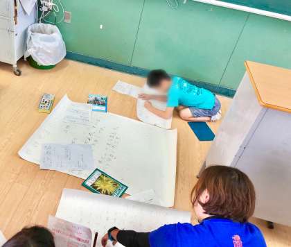発表の為に模造紙に書いています。